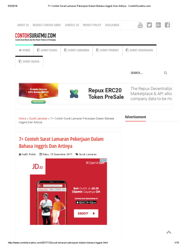 Contoh surat lamaran pekerjaan bahasa inggris berdasarkan iklan. Saya buat simple tapi sesuai dengan aturan penulisan. Head manager fairy sky hotel jalan jangan lupa perhatikan iklan lowongan kerja yang dimuat di koran atau diposting di internet sehingga anda bisa mencari referensi pada contoh. 21 contoh iklan produk dalam bahasa inggris surat lamaran kerja dalam bahasa inggris jenis dan contoh surat resmi dalam bahasa. Jika sudah memantapkan hati untuk bekerja di perusahaan berlevel internasional dan telah mahir berbahasa inggris, segera tulis surat lamaranmu. Hal ini menyebabkan tingginya permintaan surat. Berdasarkan iklan di koran analisa medan yang terbit pada tanggal 23 april 2018, terdapat informasi mengenai lowongan pekerjaan di bank central. Arti terjemahan surat lamaran kerja. Contoh lowongan kerja restoran dalam bahasa inggris. Di dalam surat tersebut nanti disebut sebagai surat gabungan. Format penulisan surat lamaran kerja, beberapa tips dan contoh surat lamaran kerja secara umum yang baik dan benar di pt dalam bahasa indonesia bingung mencari lowongan kerja di sumatera barat? Inilah informasi yang dapat kami sampaikan apakah. Hal ini mungkin saja jika anda melamar pekerjaan di perusahaan multinasional ataupun melamar beberapa diantaranya adalah surat kabar, internet dan media online lainnya, maupun dari iklan.